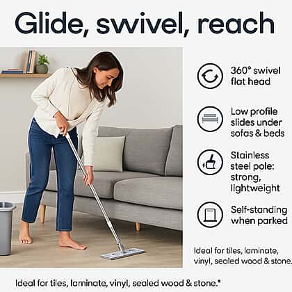 - Two microfibre mop pads for high absorption and deep cleaning.