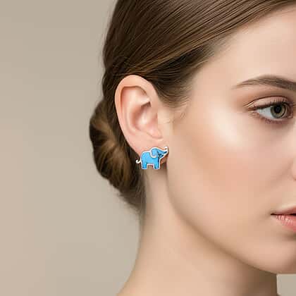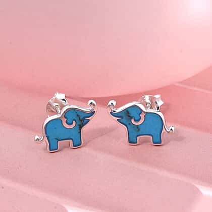 Blue Turquoise Elephant Earring with Push Back Sterling Silver