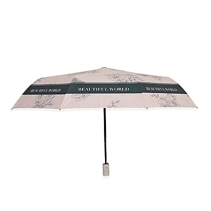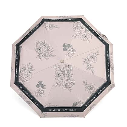 Flower Pattern Automatic Umbrella - Sun and Rain Protection - Beige - Black