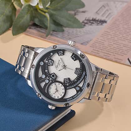 Check out the GENOA TIME V2 men's watch! It’s a great mix of style and functionality, featuring a cool dual-dial display powered by a reliable double PC21S Japan movement. The watch has a tough alloy frame with stylish IPS plating, and the dial is designed with bold numbers that give it a modern vibe. Plus, the sturdy stainless-steel strap and secure buckle make it both fashionable and practical. With a durable stainless-steel back and 3ATM water resistance, it’s perfect for everyday wear or those special occasions. And you can count on its long-lasting Japanese battery, too!