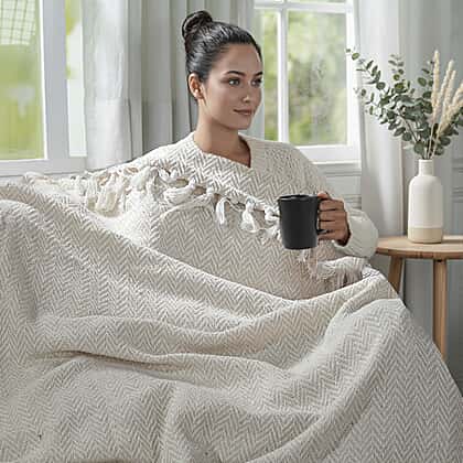 Hush Heaven 100% Soft Cotton Chevron Weaved Throw Blanket (200x150cm) - Cream