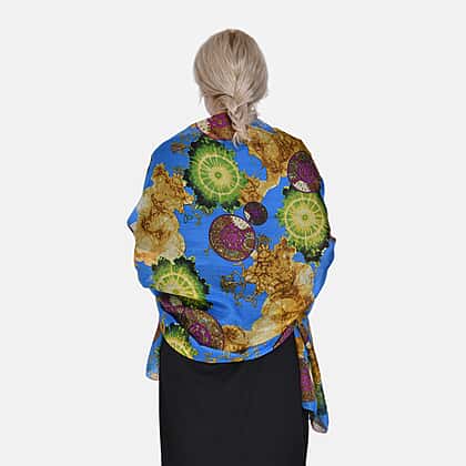 La Marey Whimsical Art Printed 100% Mulberry Silk Scarf (Size 180x110 cm) - Pink & Yellow