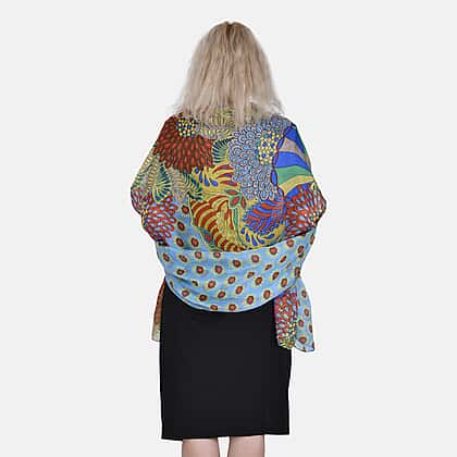 LA MAREY Daisy Pattern 100% Mulberry Silk Scarf (Size 180x110cm) - Green & Yellow