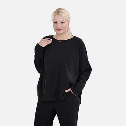 Stay comfortable and stylish with this La Marey full-sleeves ladies casual top. Made from a soft blend of 95% polyester and 5% elastane, it offers the perfect stretch for an easy fit. The crew neck design provides a relaxed yet polished look, while the convenient front pocket adds a functional detail with a touch of casual charm. Perfect for layering or wearing on its own, this top is a versatile piece for your everyday wardrobe. Whether lounging at home or heading out, this top ensures you stay effortlessly chic all day.