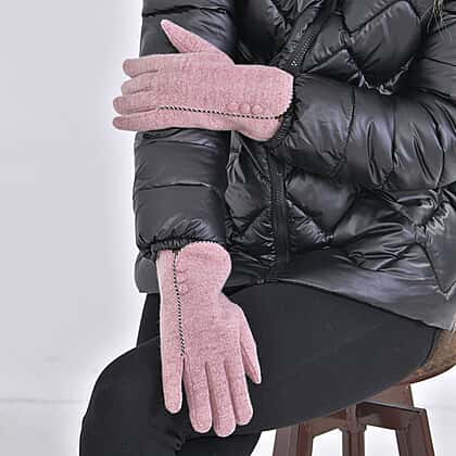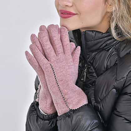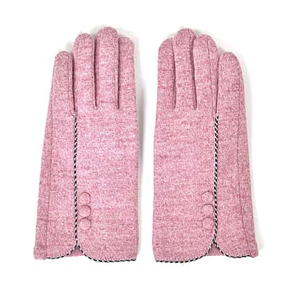 Luxury Cashmere Wool Gloves With Button Detailing and Fleece Lining - Pink