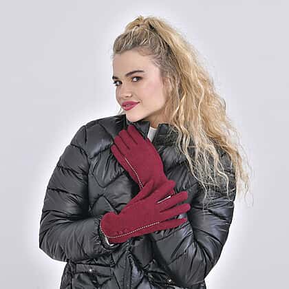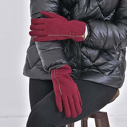 Luxury Cashmere Wool Gloves With Button Detailing and Fleece Lining - Red