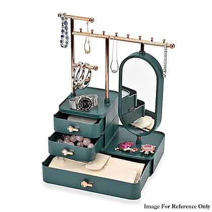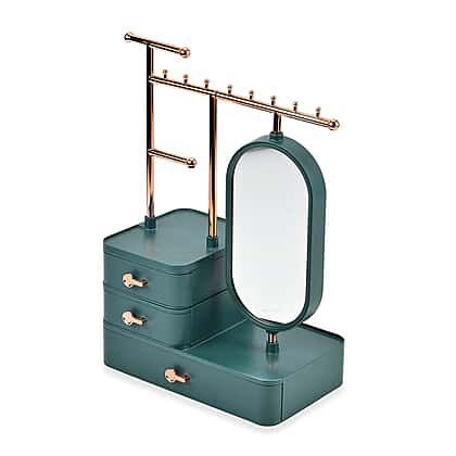 Get your precious belongings sorted with the Emerald Elegance Tiered Tower Jewellery Holder. This stunning green tower boasts a 360-degree rotating mirror and three spacious drawers, ensuring all your precious pieces are neatly organised and easily accessible. The sleek design, finished in a luxurious emerald green, complements any décor and transforms your jewellery collection into a captivating visual display. Indulge in the practicality and beauty of this exquisite jewellery holder.