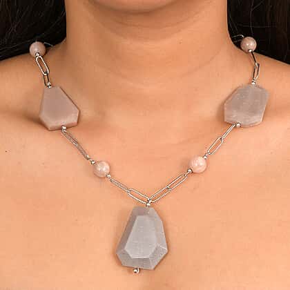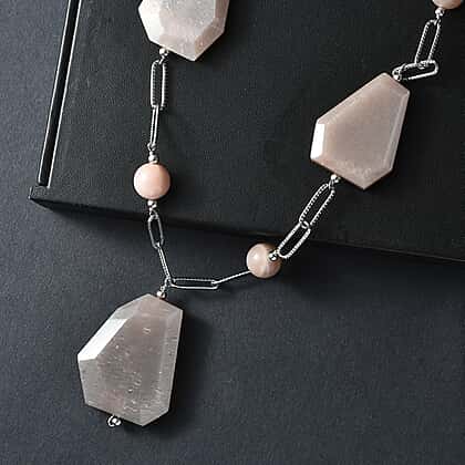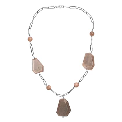 Peach Moonstone Necklace (Size - 20) Silver Tone 240.00 Ct.