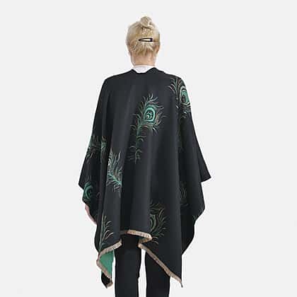 Enhance your wardrobe with this black peacock feather pattern super soft shawl, a must-have accessory for effortless sophistication. Designed from 20% viscose and 80% polyester, it offers a silky-smooth texture that feels incredibly soft against the skin. The striking peacock feather motif stands out beautifully against the deep black background, adding a refined touch to any ensemble. With a spacious 160x120 cm design, it provides warmth and graceful draping, making it ideal for layering over both casual and formal outfits. Durable, breathable, and easy to maintain, this shawl is the perfect finishing touch to enhance your style with timeless elegance.