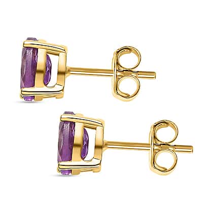 Pink Amethyst Stud Earrings with Push Back in 18K Vermeil Yellow Gold Plated Sterling Silver 1.34 Ct.