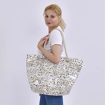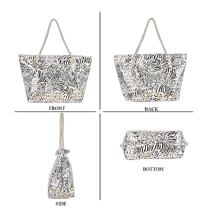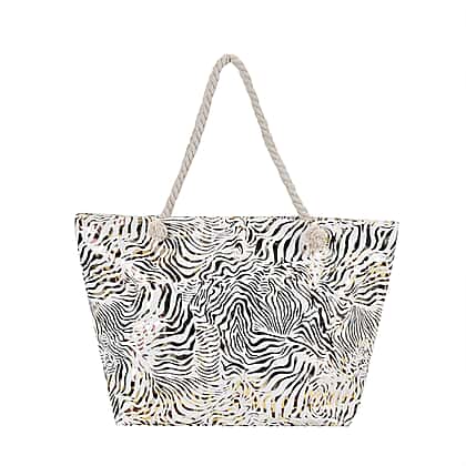Zebra pattern large size tote bag with rope handle (Size 38x20x38 cm) - White & Black