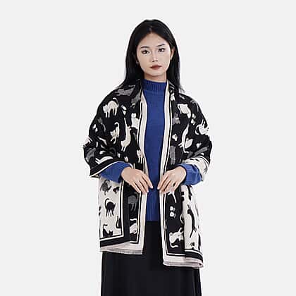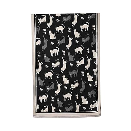 Wrap yourself in cosy warmth with this super soft black shawl featuring a charming cat pattern. Designed for cat lovers, this stylish accessory adds a playful yet elegant touch to any outfit. Made from 100% acrylic, it feels soft against the skin and offers excellent comfort throughout the day. The generous 200x68 cm size allows for versatile styling, whether draped over the shoulders or wrapped around for added warmth. Tassel details along the edges enhance its stylish appeal, making it a perfect blend of fashion and function. Lightweight yet snug, this shawl is a must-have for any wardrobe.