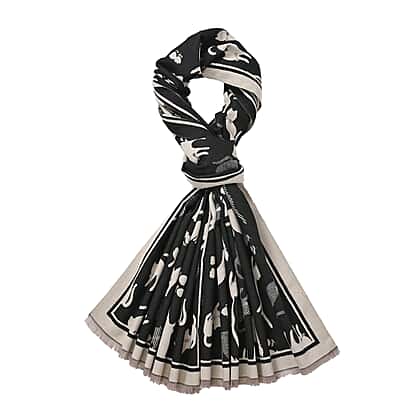 Closeout Deal Super Soft Cat Print Shawl - Black & Beige