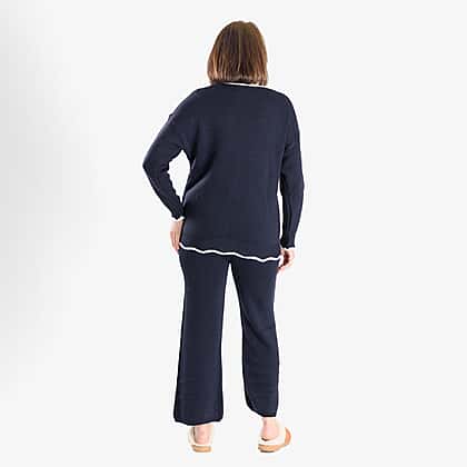 Elevate your wardrobe with these Navy Loungewear Ribbed Trousers, made from soft 100% acrylic. Featuring a stylish ribbed texture, a slim fit through the thighs, and a fashionable kick flare, these trousers seamlessly blend comfort with sophistication. The rich navy colour provides versatile styling possibilities, whether you choose to pair them with soft pastels or vibrant hues for an effortlessly refined look. Perfect for a relaxed yet modish appearance, these trousers are a must-have addition to any fashion-forward collection. Enjoy the perfect combination of elegance and ease with every wear.