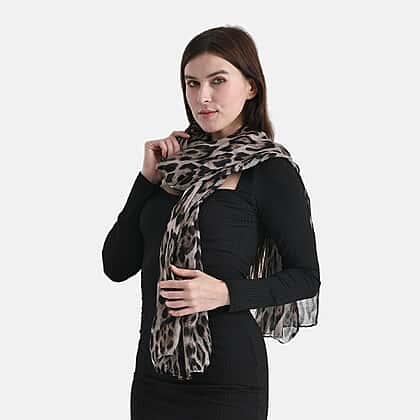Styled By Leopard Print Scarf (64x180cm) - Brown - Black