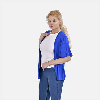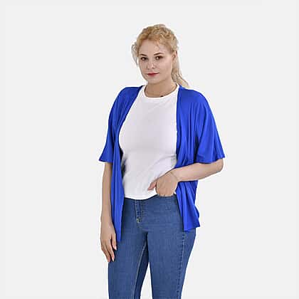 Tamsy V-Neck Mid-Sleeve Cardigan (One Size) - Blue