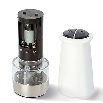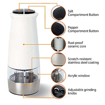 2 in 1 Stainless Steel Electric Salt and Pepper Mill with Two Compartments Size 17x6.5 Cm in White Colour