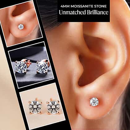 Moissanite Solitaire Stud Earrings in 18K Vermeil Rose Gold Plated Sterling Silver