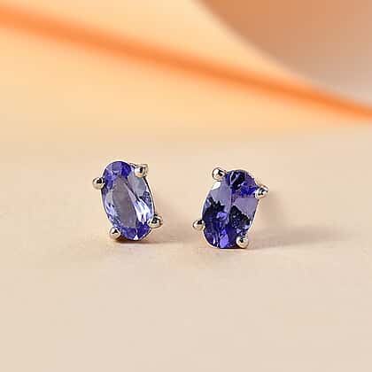 BIGGEST TANZANITE DEAL - Tanzanite Solitaire Stud Earrings With Push Back in Rhodium Overlay Sterling Silver