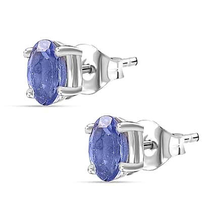 Tanzanite Solitaire Stud Push Post Earrings in Rhodium Overlay Sterling Silver