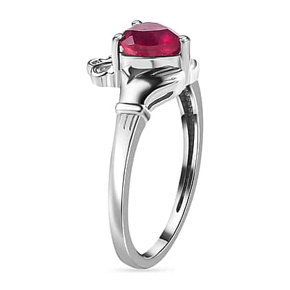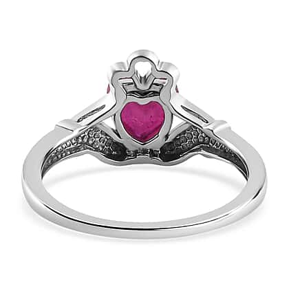Biggest Valentines Ruby Deal - African Ruby Solitaire Heart Crown Ring in Platinum Overlay Sterling Silver 1.37 Ct.