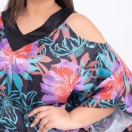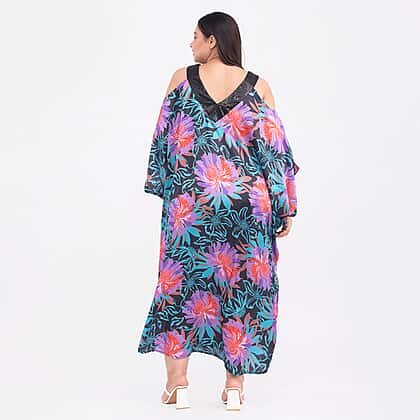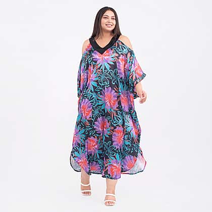 TAMSY Cold Shoulder V-Neck Floral Kaftan