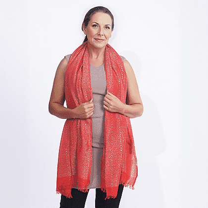 TAMSY Viscose Shiny Metallic Mesh Shawl - Red