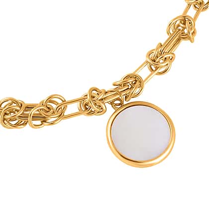 Limited Closeout Deal- Designer Inspired Gold Plated Paper Clip Link Byzantine White Shell Pearl Necklace (Size 20-3 inch Ext.)