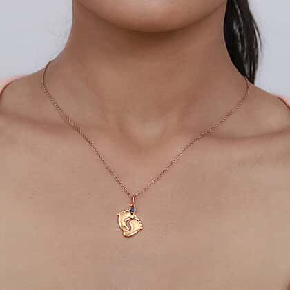 • DESIGN: To complete the look of this stunning pendant, two feet shaped charms with gemstones set in bezel settings have been added