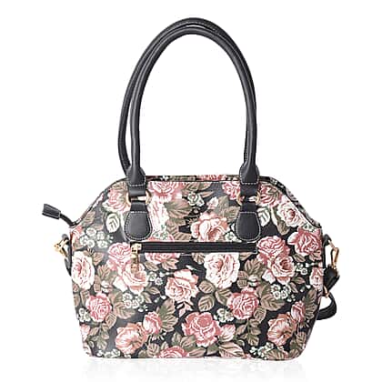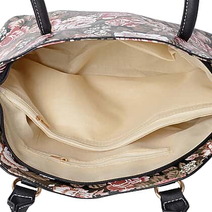 Black and Multi Colour Floral Pattern Tote Bag with Removable Shoulder Strap (Size 36x31x25x14 Cm)