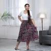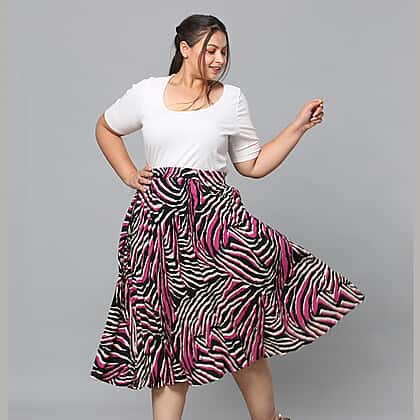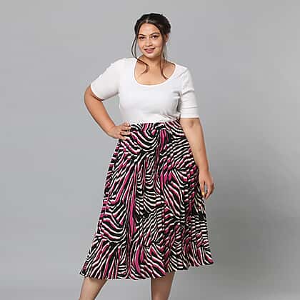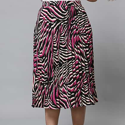 Black and Pink Pleated Midi Skirt with Elasticated Waist