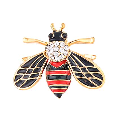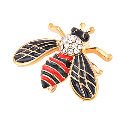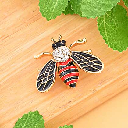 Black and White Austrian Crystal Enamelled Bee Brooch in Yellow Gold Tone