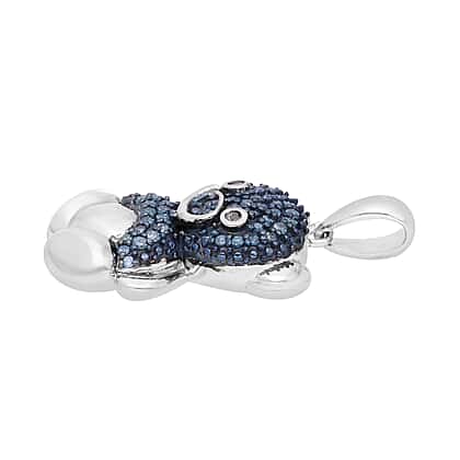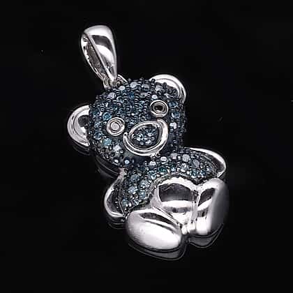 Black Diamond & Blue Diamond Teddy Bear Pendant in Platinum Overlay Sterling Silver 0.25 Ct