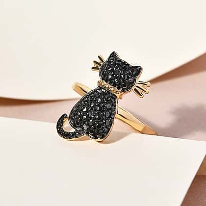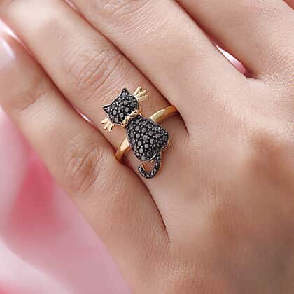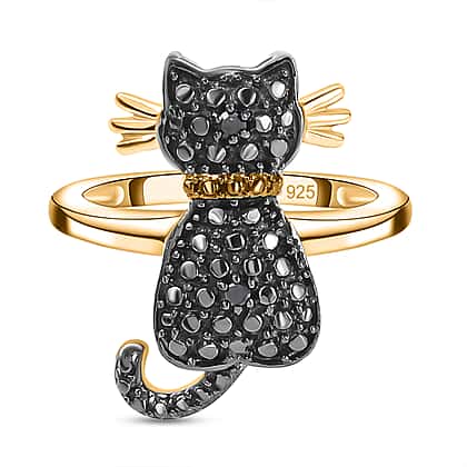 Black Diamond Cat Ring in Black Overlay and 18K Yellow Gold Vermeil Plated Sterling Silver