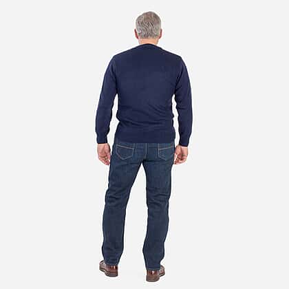 Made In Britain Cavallio Mens Crewneck Jumper With Embroidered Logo (Size XL) - Navy