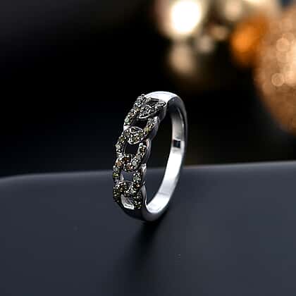 Green Diamond Band Ring in Rhodium Overlay Sterling Silver