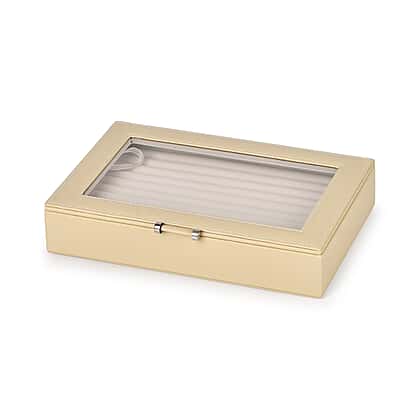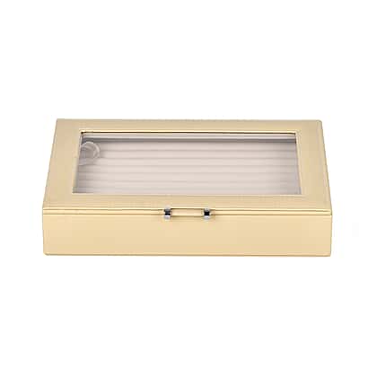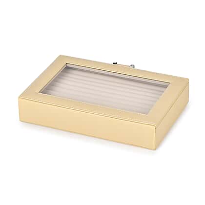 Portable Anti Tarnish Lining Jewellery Box with Glass Window (Size:26.7x17.8x5.5Cm) - Beige