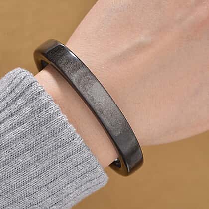Embrace grounded elegance with this 122.45 ct. black obsidian stone bangle in size 7.5, known for its sleek appearance and powerful symbolism. Polished to a soft sheen, this natural gemstone bangle features a minimalist silhouette with deep, inky tones that suit every style. With its smooth, comfortable fit and robust design, this bangle is perfect for everyday wear or meaningful gifting. It blends raw beauty with a sense of calm confidence, offering timeless appeal and spiritual significance in one effortless piece.