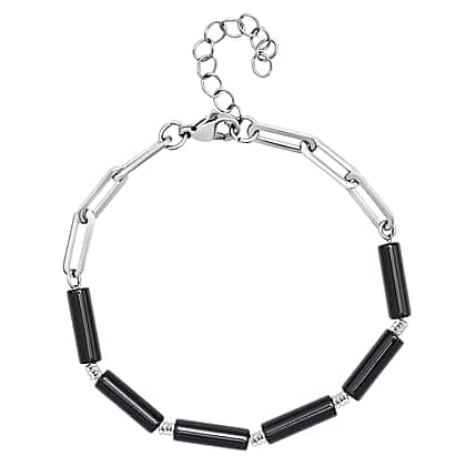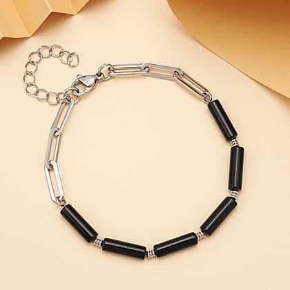 Black Onyx Beads Bracelet (Size - 7.5 with Ext.) in Stainless Steel 18.00 Ct.