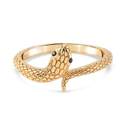 Black Spinel Snake Ring in Gold Plated Sterling Silver
