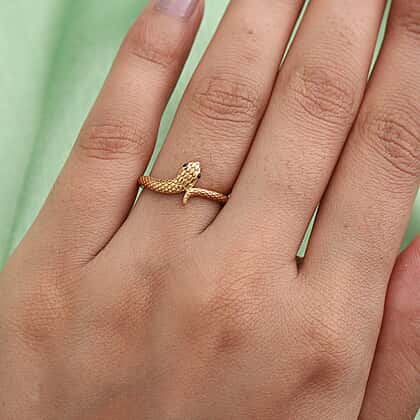 Black Spinel Snake Ring in 14K Gold Overlay Sterling Silver