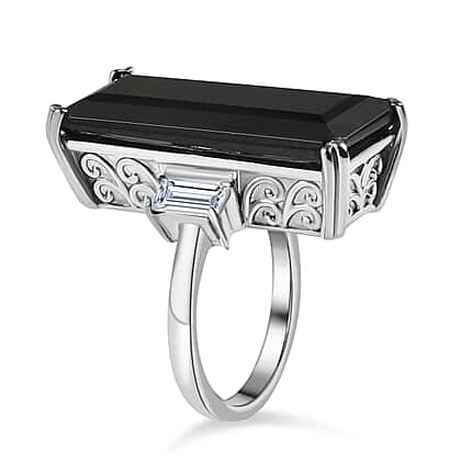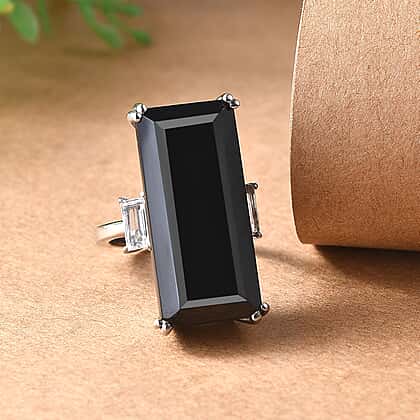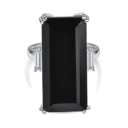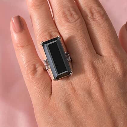 Black Spinel & White Topaz Solitaire Ring 31.01 Ct.