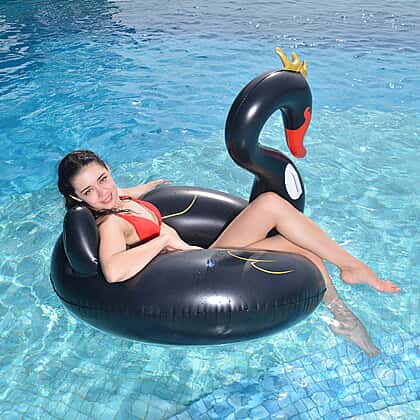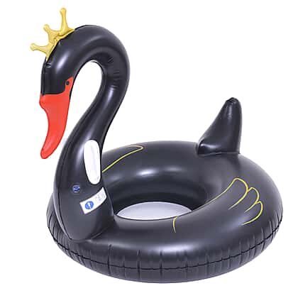 Vinyl Black Swan Pool Float with 2 Valves and Chambers - Black and Red