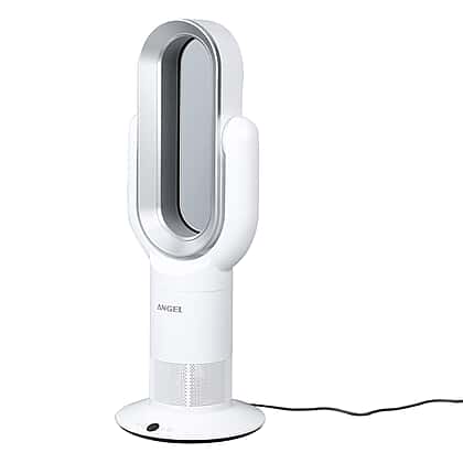 Anzheluo Bladeless Tower Air Fan with Remote Control - No Noise, Adjustable, Floor Standing - Silver and White