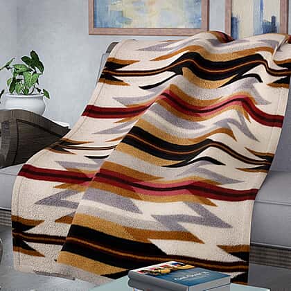 Monster Deal TJC Soft Single Layer Sherpa Blanket White and Multi