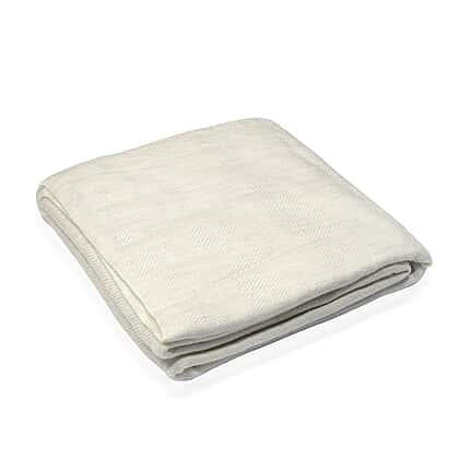 Natural Cashmere Wool Throw Blanket (Size 260x140 Cm) - Off-White