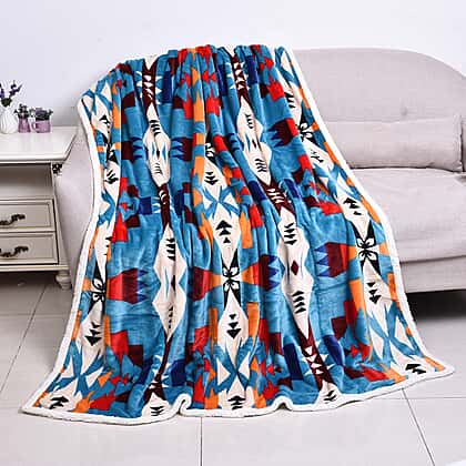 Tribal Pattern Flannel Multicolour Sherpa Blanket Size 190x150cm