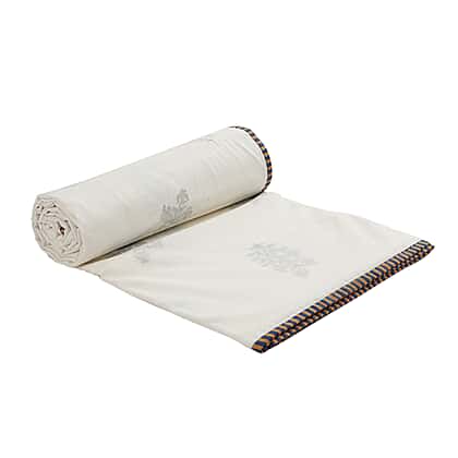 Super Find - 100% Cotton Reversible Hand Block Floral Motifs Printed Muslin Dohar Summer Blanket (Size 200x200cm) - Off White & Brown