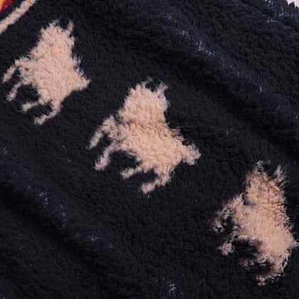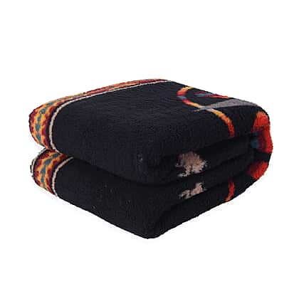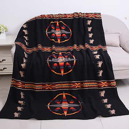 Tribal Pattern Sherpa Black Blanket Size 150x200cm
