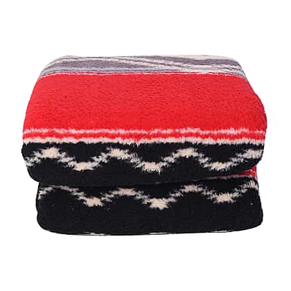 Tribal Pattern Red Black and Multi Sherpa Blanket Size 150x200cm
